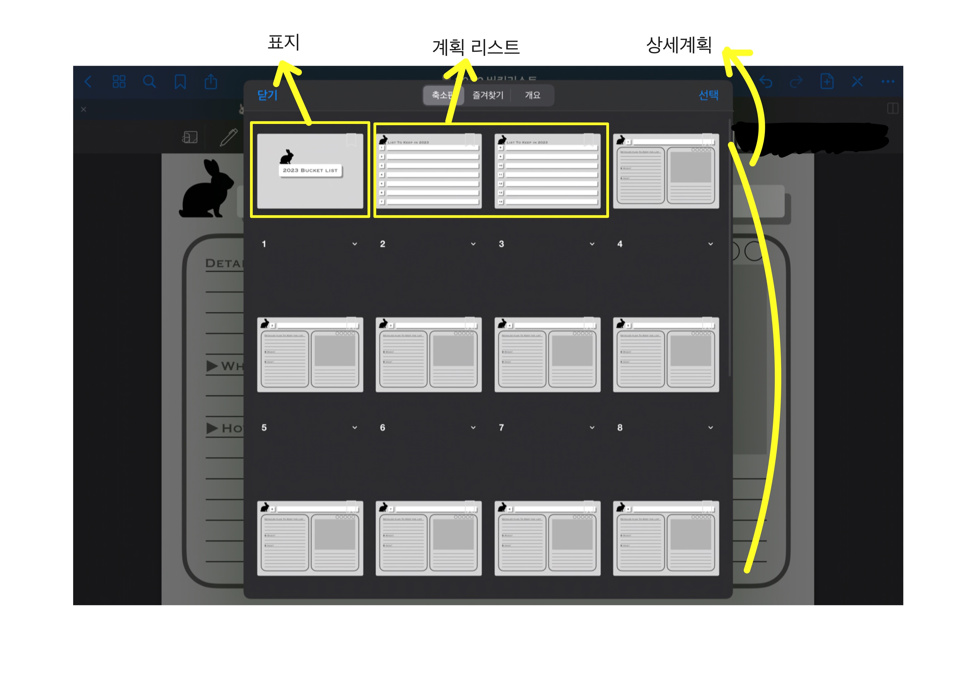 2023 버킷리스트 속지 구성은 다음과 같습니다.