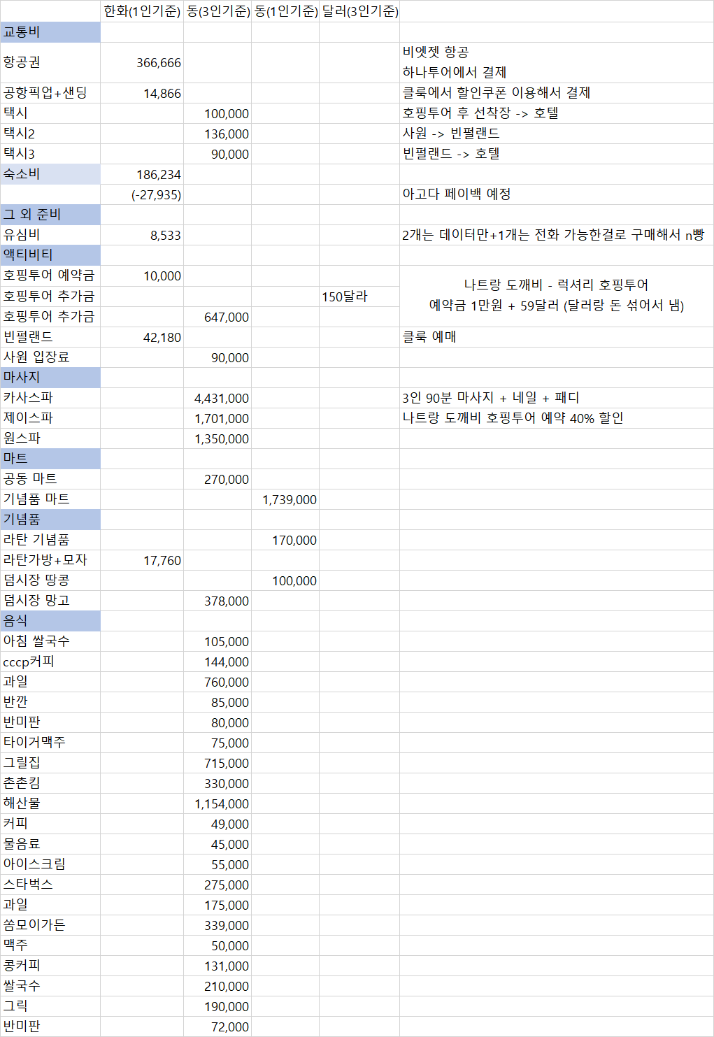 이건 3인 기준으로 지출한 것도, 1인 기준으로 지출한 것도 있어서 너무 복잡한 것 같아