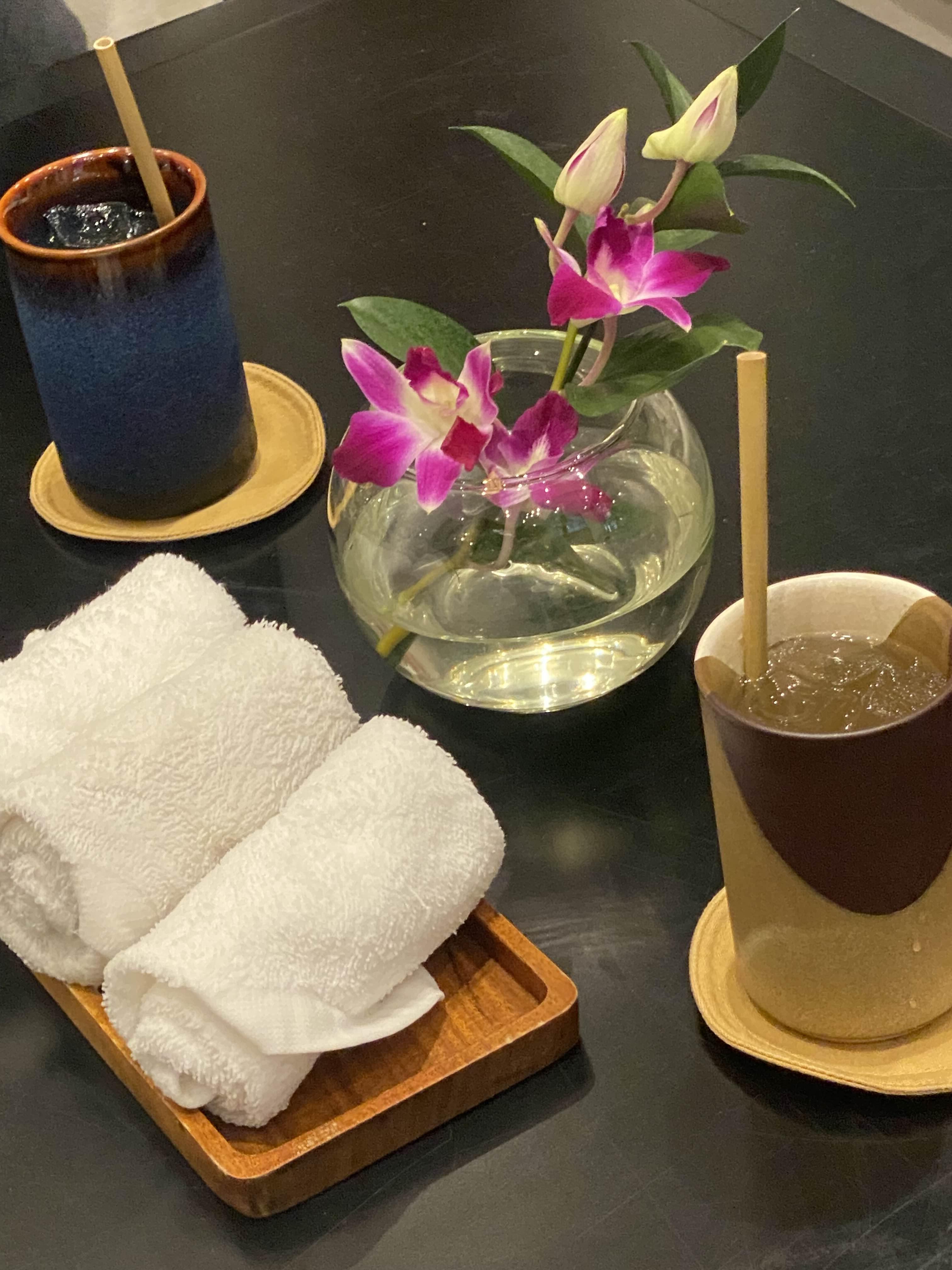 들어가자마자 주는 손수건이랑 웰컴드링크!