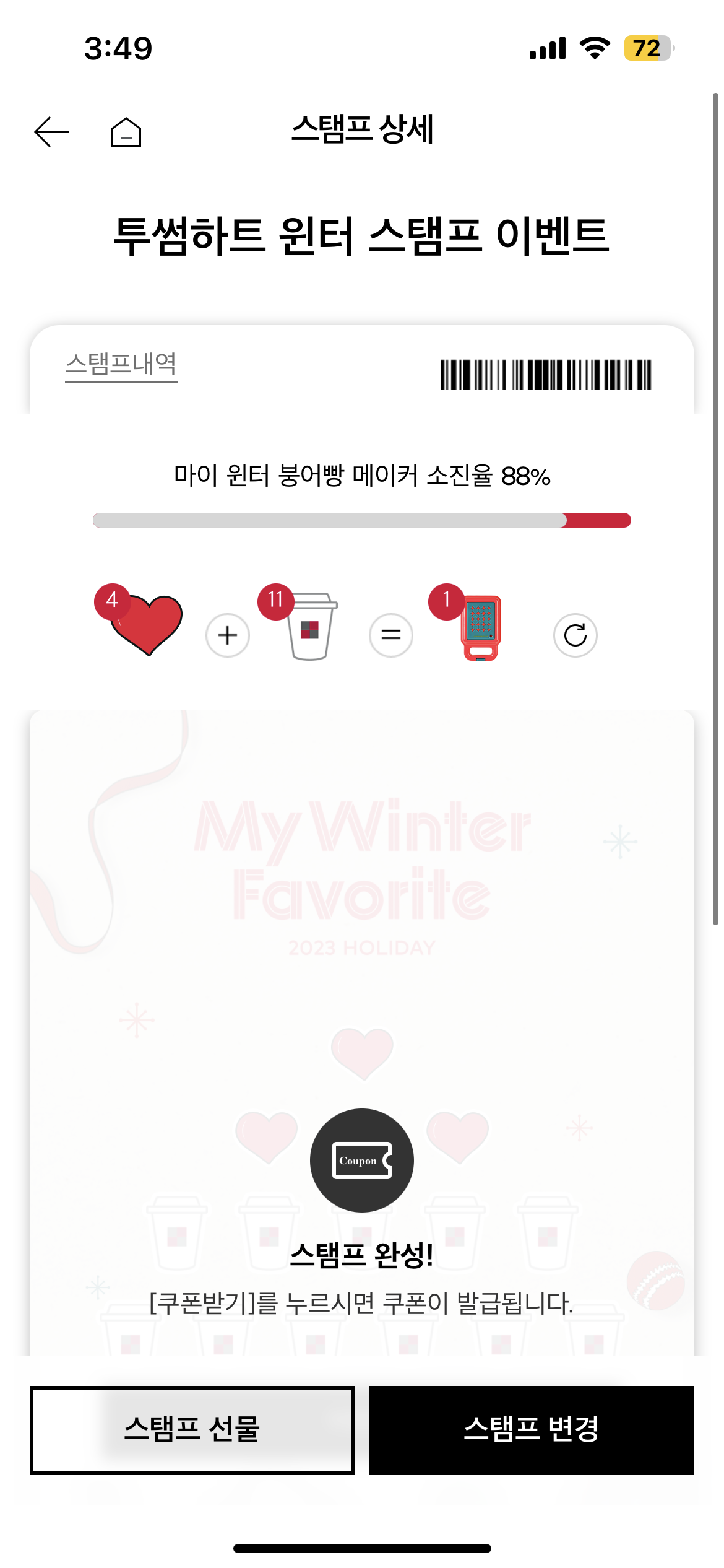 투썸하트 적립 뿐만 아니라 스탬프도 자동으로 찍힌다!!