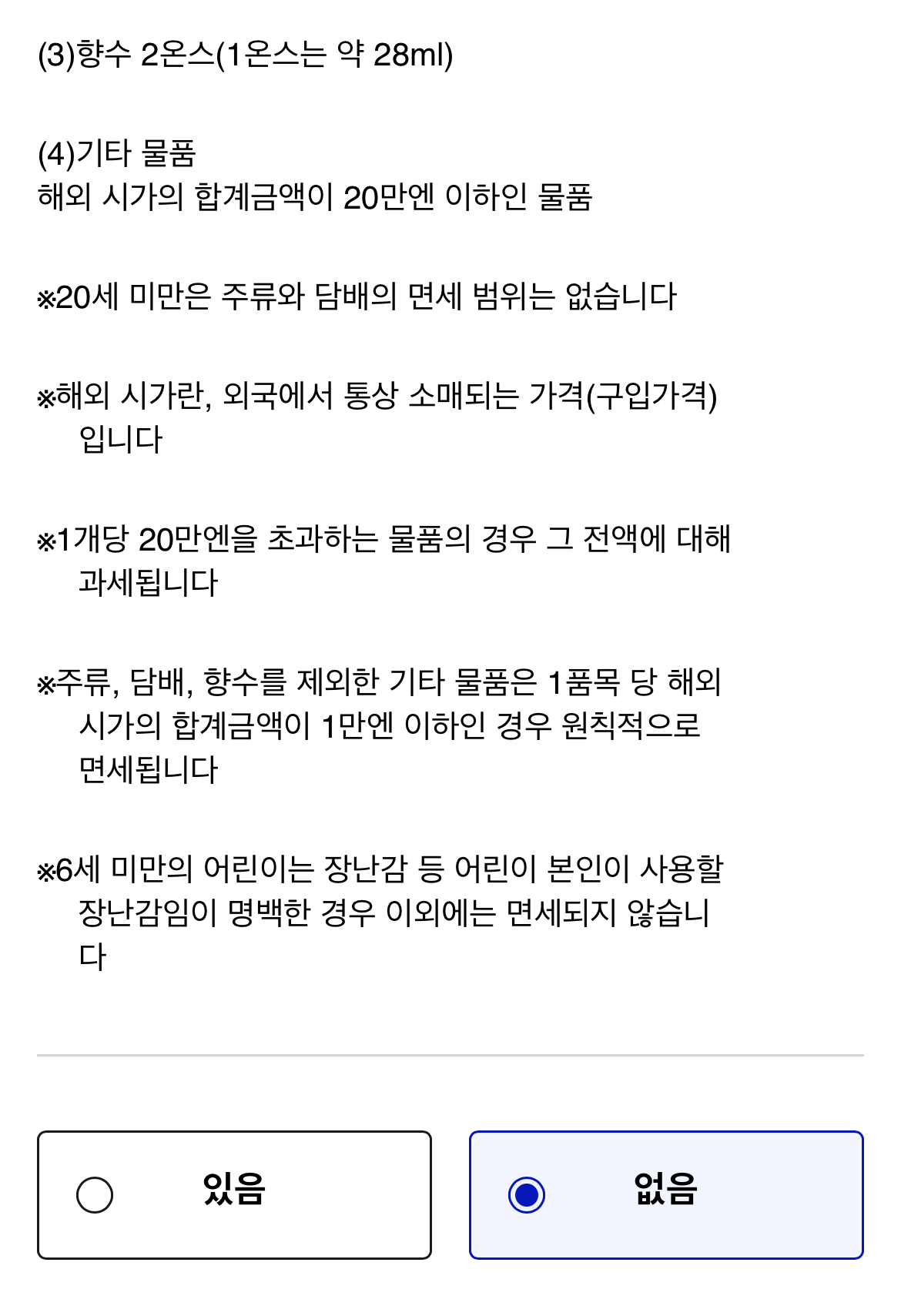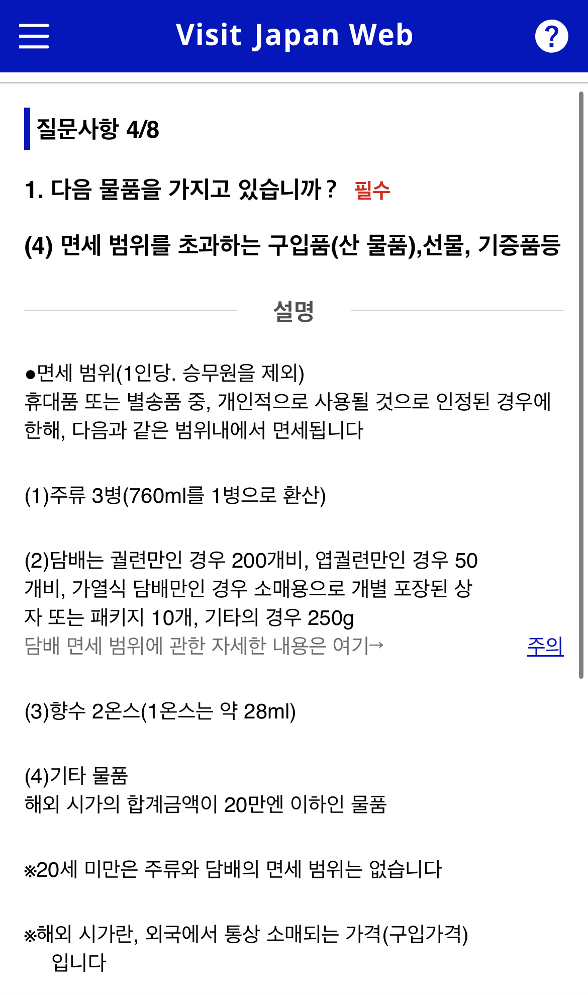 면세 범위를 초과하는 구입품을 좀 주의해야 하는데