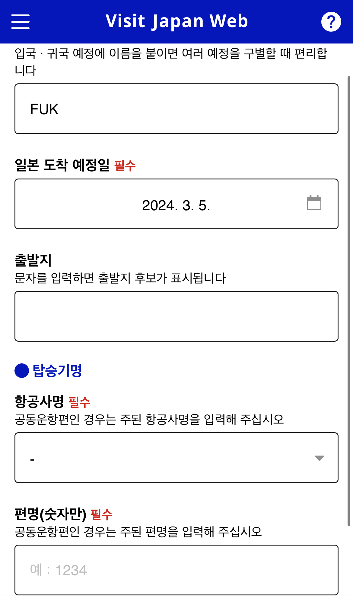 3. 입국, 귀국 예정 등록