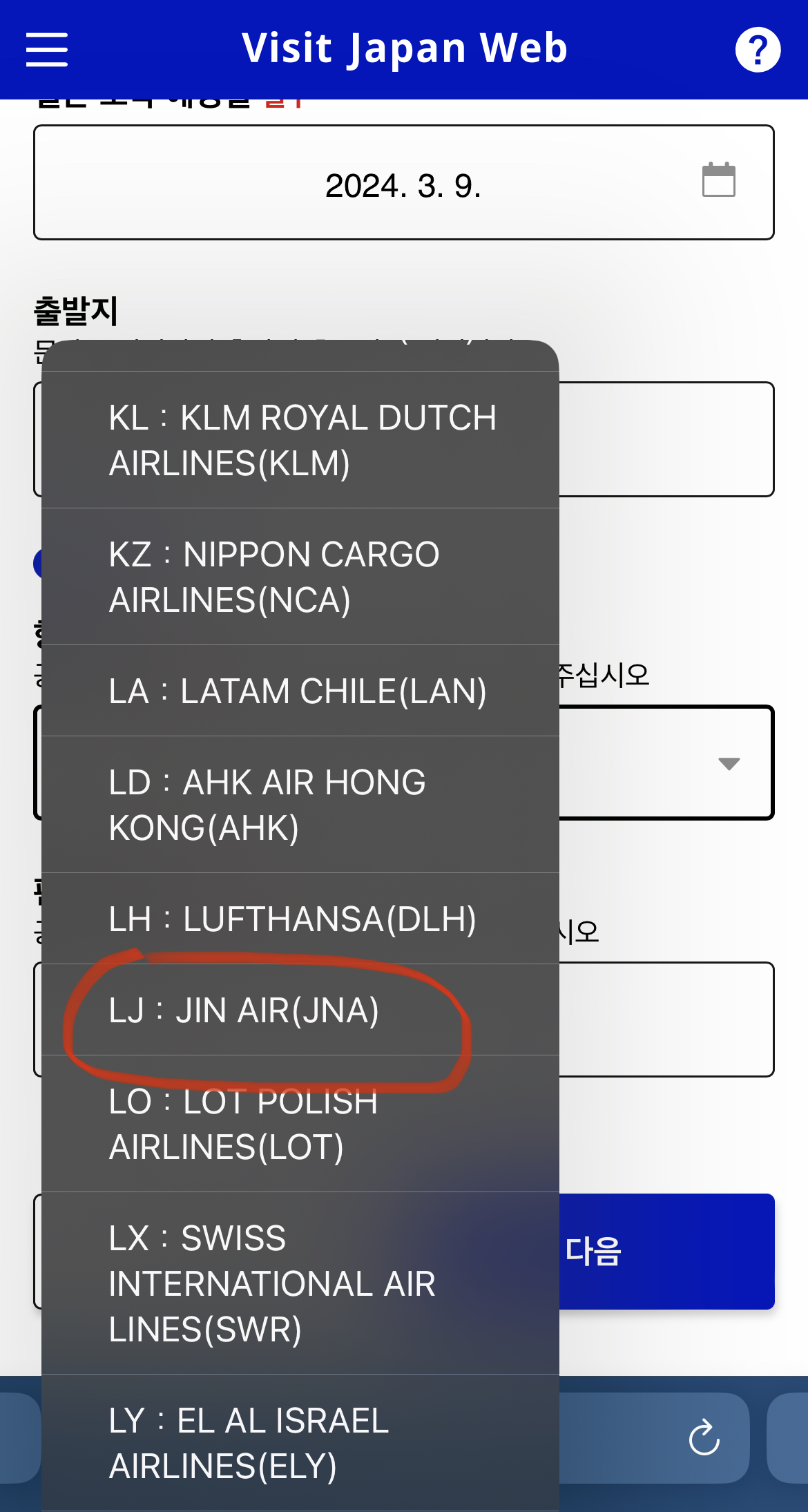 항공사명 : 누르면 여러 항공사가 나온다. 자세히 찾으면 다 있으니 없어도 당황하지 말기. 참고로 진에어는 LJ이다.