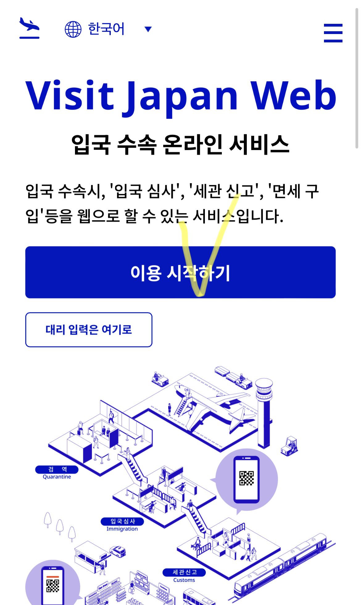 큐알을 보여주면 더 빨리 입국할 수 있다고 한다.