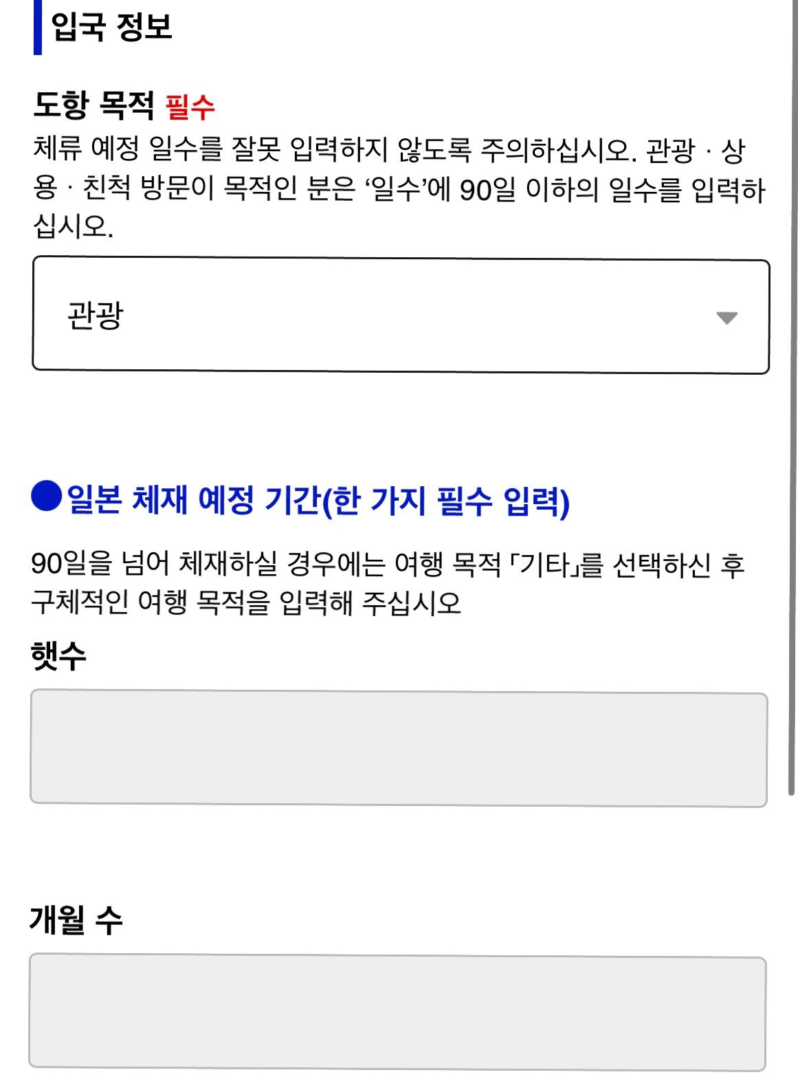일본 체재 예정 기간 : 여행기간 (~일)