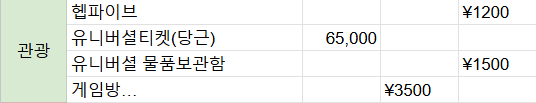 이번 오사카 2박 3일 경비는 총합